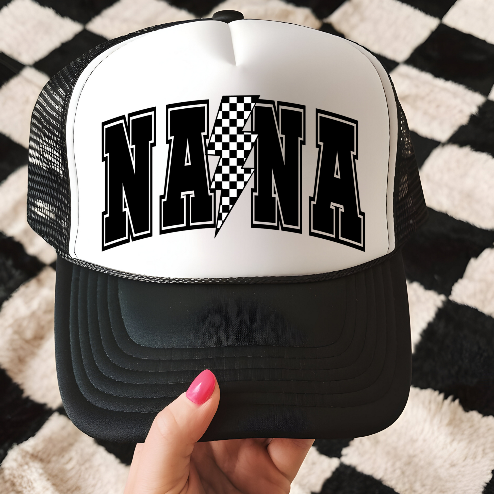 NANA with Checkered Lightening Bolt Trucker Hat Transfer - G29