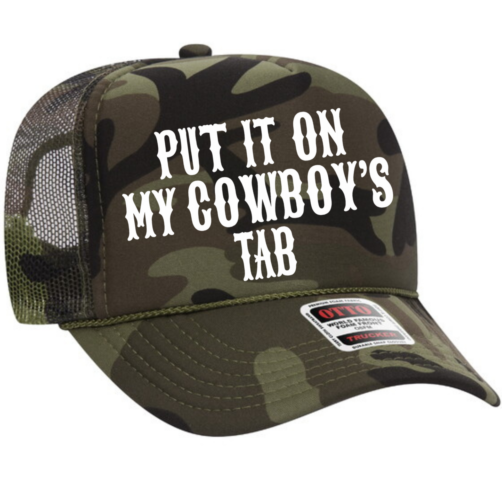Put It On My Cowboy's Tab (white ink) Trucker Hat Transfer - G3