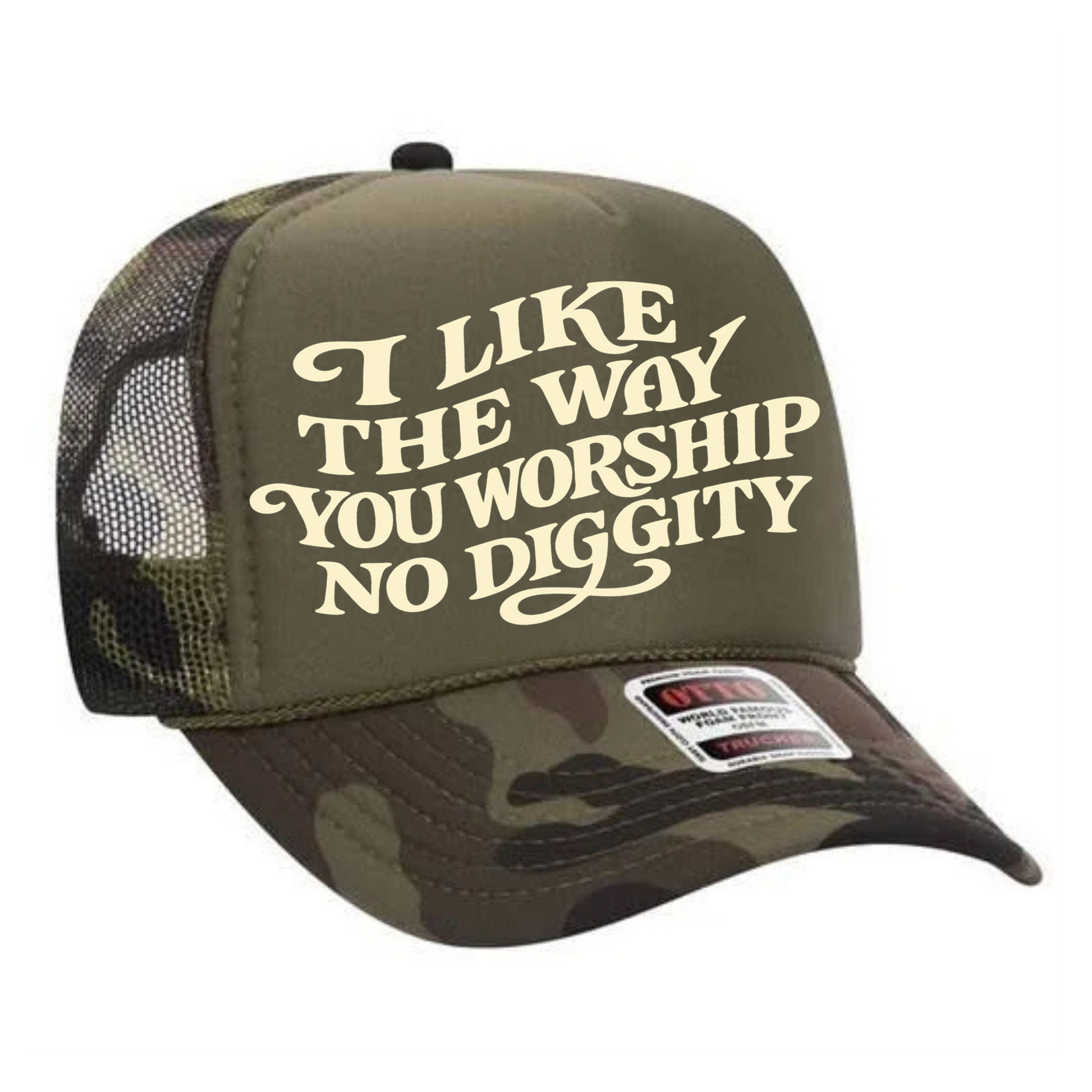 Worship, No Diggity Trucker Hat Print - F10